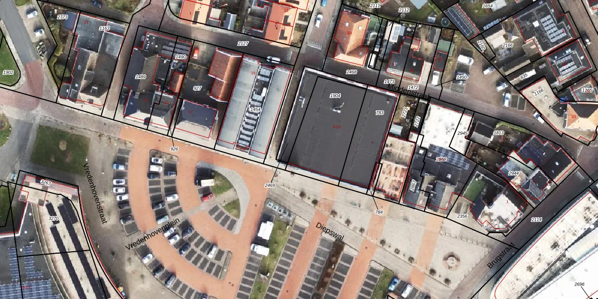 Het perceel waarop Diepswal 13 staat heeft een oppervlakte van 591 m². Dit is een groot perceel. De perceeloppervlakte wordt geregistreerd door het Kadaster. Gedetailleerde informatie over de maten van dit perceel kunt u vinden in het rapport Kadastrale kaart met maatvoering van Diepswal 13.