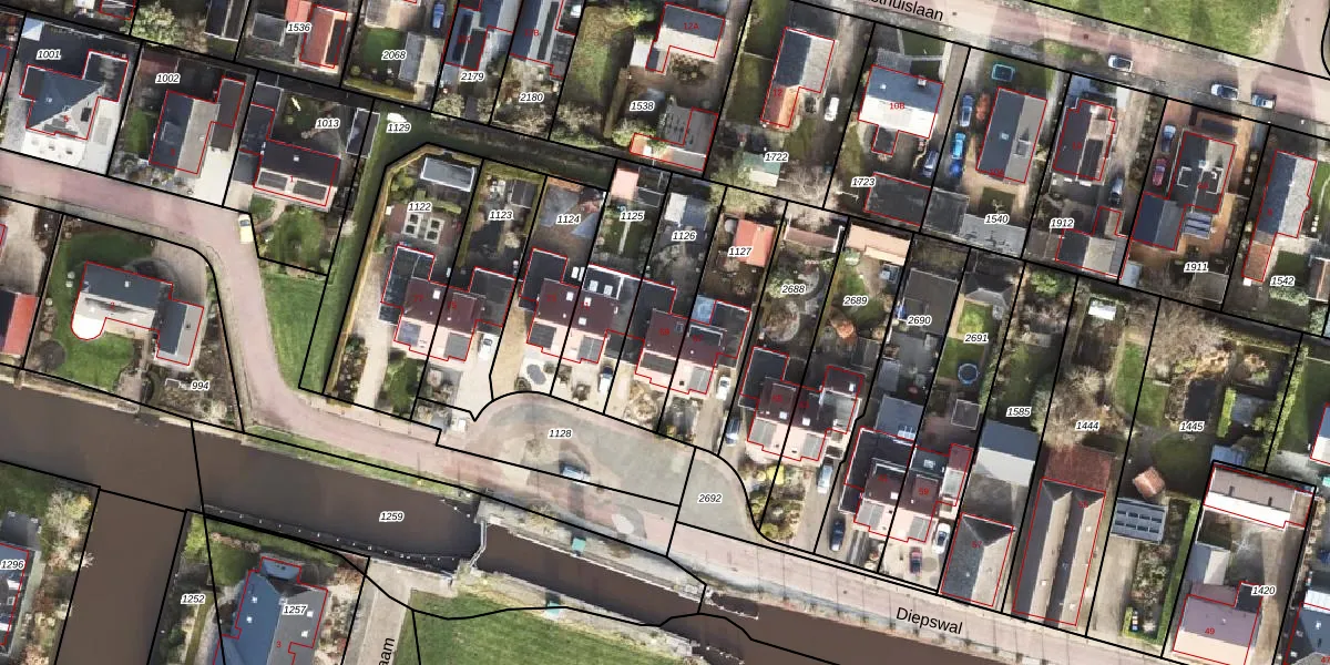 Het perceel waarop Diepswal 69 staat heeft een oppervlakte van 325 m². Dit is een groot perceel. De perceeloppervlakte wordt geregistreerd door het Kadaster. Gedetailleerde informatie over de maten van dit perceel kunt u vinden in het rapport Kadastrale kaart met maatvoering van Diepswal 69.