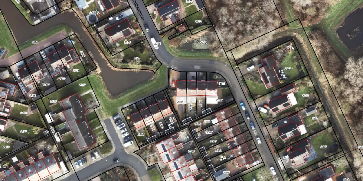 Dollardlaan 120 is gelegen op kadastraal perceel SDA00E2894. Deze kadastrale aanduiding is uniek en wordt gebruikt door het Kadaster om eigendomsrechten en andere zakelijke rechten vast te leggen. Het perceel maakt onderdeel uit van de kadastrale gemeente Scheemda.