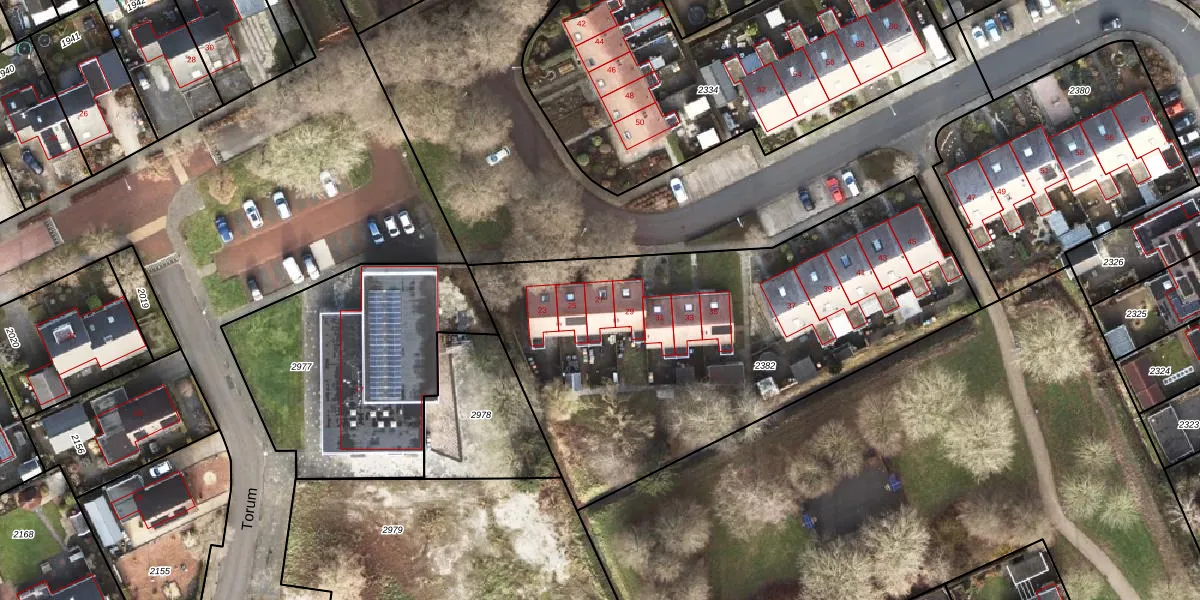 Het perceel waarop het adres ligt is SDA00-E-2382. De afkorting 'SDA00' staat voor kadastrale gemeente Scheemda. Het perceel is 2325 m² groot. Dat is kleiner dan de gemiddelde perceeloppervlakte in Scheemda, dat op 8487,94 m² ligt. Het kleinste perceel in de kadastrale gemeente is 0 m² groot. De grootste perceeloppervlakte is 43,3 ha. Op het perceel zijn 12 adressen aanwezig. De laatste wijziging in het de Basisregistratie Kadaster (BRK) was op 15-11-2021.