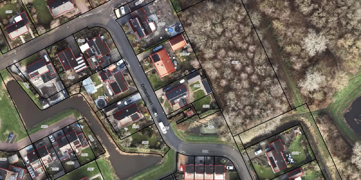 Gebruik de zoekbalk of klik op een perceel voor informatie over de adressen binnen dit perceel.
