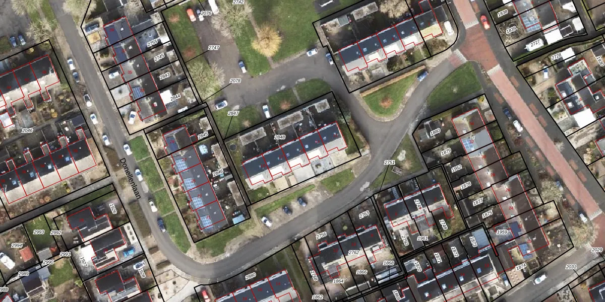 Donellenlaan 15 is gelegen op kadastraal perceel SDA00E2848. Deze kadastrale aanduiding is uniek en wordt gebruikt door het Kadaster om eigendomsrechten en andere zakelijke rechten vast te leggen. Het perceel maakt onderdeel uit van de kadastrale gemeente Scheemda.