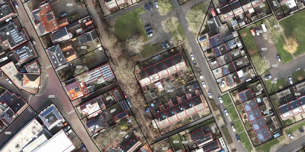 Donellenlaan 46 is gelegen op kadastraal perceel SDA00E2046. Deze kadastrale aanduiding is uniek en wordt gebruikt door het Kadaster om eigendomsrechten en andere zakelijke rechten vast te leggen. Het perceel maakt onderdeel uit van de kadastrale gemeente Scheemda.