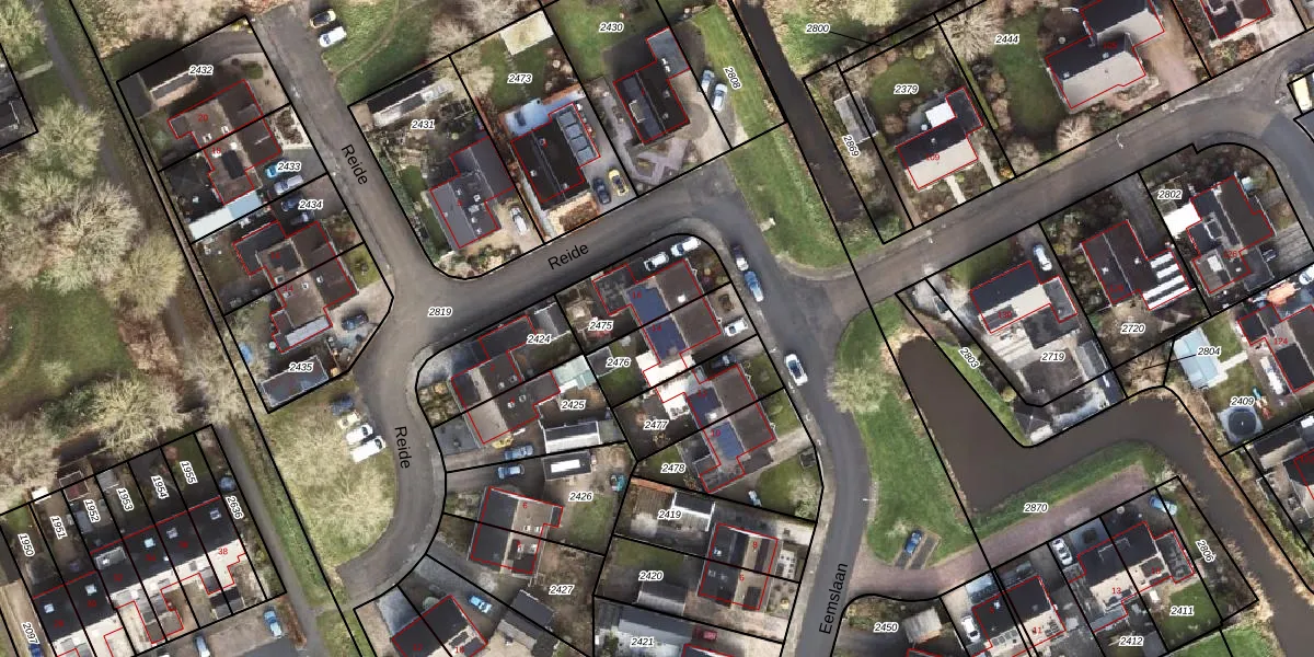 Eemslaan 14 is gelegen op kadastraal perceel SDA00E2476. Deze kadastrale aanduiding is uniek en wordt gebruikt door het Kadaster om eigendomsrechten en andere zakelijke rechten vast te leggen. Het perceel maakt onderdeel uit van de kadastrale gemeente Scheemda.