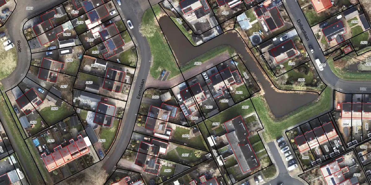 Eemslaan 9 is gelegen op kadastraal perceel SDA00E2416. Deze kadastrale aanduiding is uniek en wordt gebruikt door het Kadaster om eigendomsrechten en andere zakelijke rechten vast te leggen. Het perceel maakt onderdeel uit van de kadastrale gemeente Scheemda.