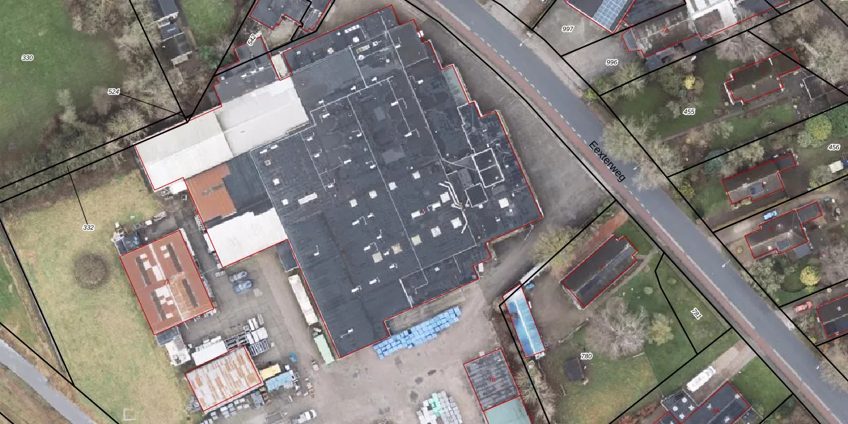 Het perceel waarop Eexterweg 7 staat heeft een oppervlakte van 1,7 ha. Dit is een zeer groot perceel. De perceeloppervlakte wordt geregistreerd door het Kadaster. Gedetailleerde informatie over de maten van dit perceel kunt u vinden in het rapport Kadastrale kaart met maatvoering van Eexterweg 7.