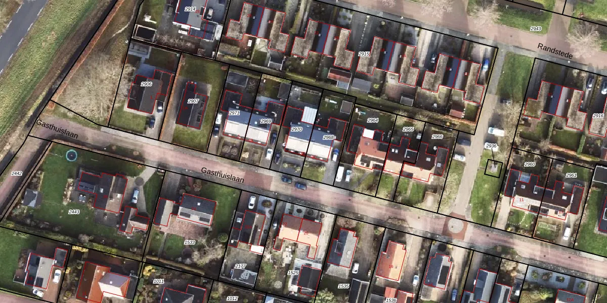 Gebruik de zoekbalk of klik op een perceel voor informatie over de adressen binnen dit perceel.