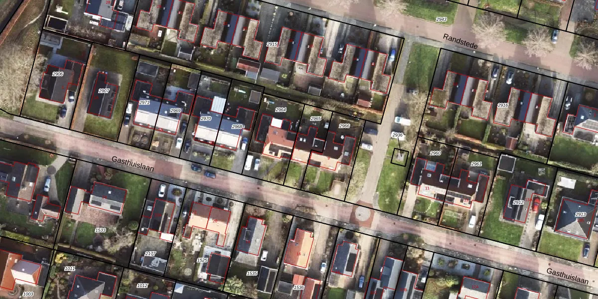 Gebruik de zoekbalk of klik op een perceel voor informatie over de adressen binnen dit perceel.