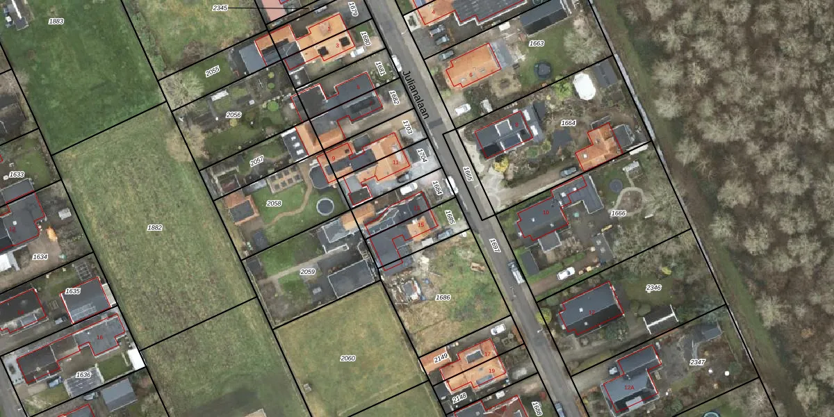Het perceel waarop Julianalaan 13 staat heeft een oppervlakte van 188 m². Dit is een middelgroot perceel. De perceeloppervlakte wordt geregistreerd door het Kadaster. Gedetailleerde informatie over de maten van dit perceel kunt u vinden in het rapport Kadastrale kaart met maatvoering van Julianalaan 13.