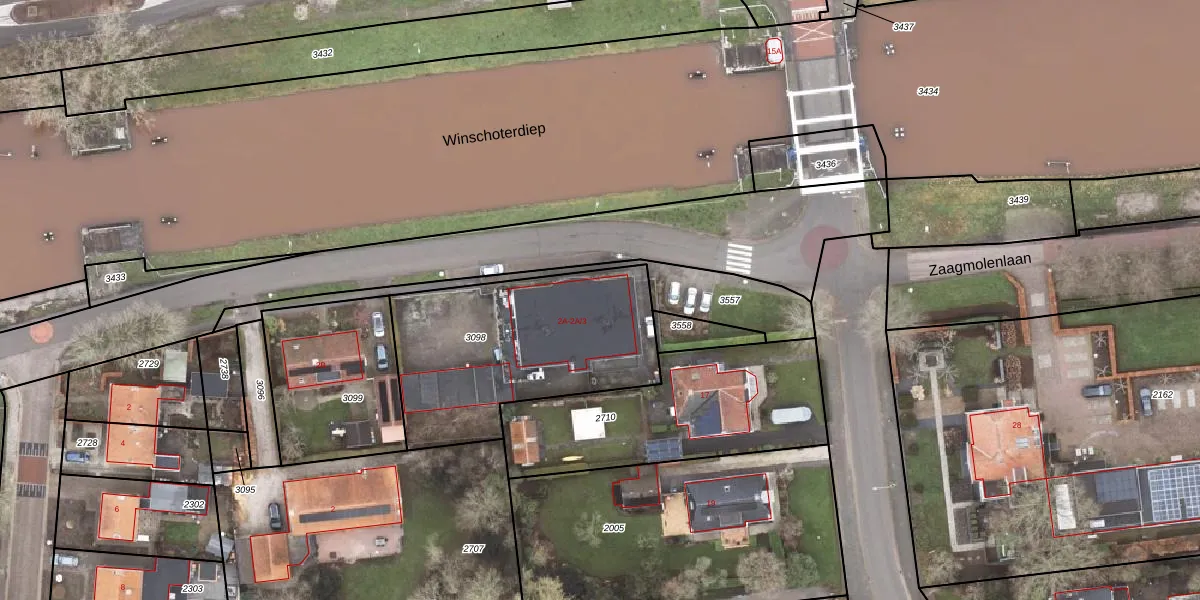 Kanaalweg 2-A is gelegen op kadastraal perceel SDA00F3098. Deze kadastrale aanduiding is uniek en wordt gebruikt door het Kadaster om eigendomsrechten en andere zakelijke rechten vast te leggen. Het perceel maakt onderdeel uit van de kadastrale gemeente Scheemda.