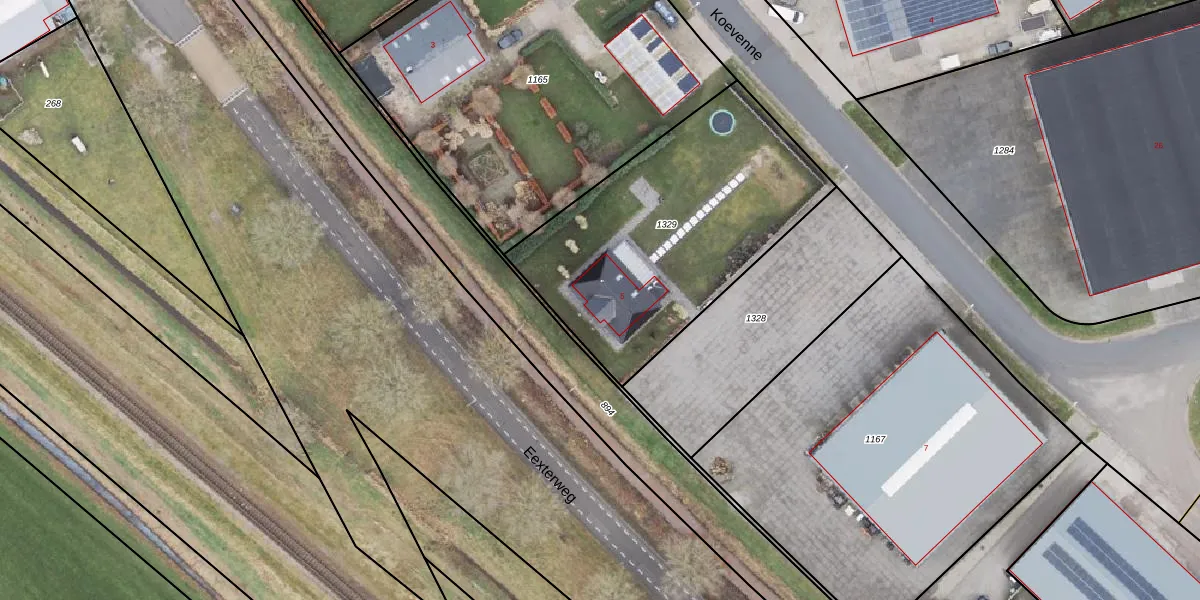 Het perceel waarop Koevenne 5 staat heeft een oppervlakte van 1312 m². Dit is een zeer groot perceel. De perceeloppervlakte wordt geregistreerd door het Kadaster. Gedetailleerde informatie over de maten van dit perceel kunt u vinden in het rapport Kadastrale kaart met maatvoering van Koevenne 5.