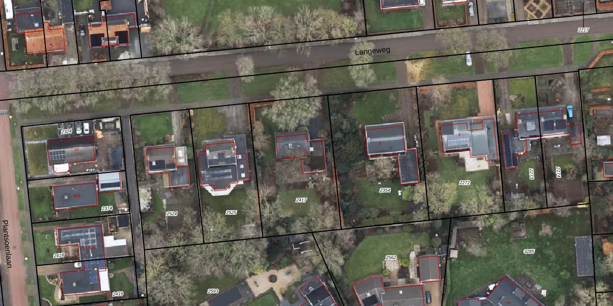 Langeweg 10 is gelegen op kadastraal perceel SDA00F2417. Deze kadastrale aanduiding is uniek en wordt gebruikt door het Kadaster om eigendomsrechten en andere zakelijke rechten vast te leggen. Het perceel maakt onderdeel uit van de kadastrale gemeente Scheemda.