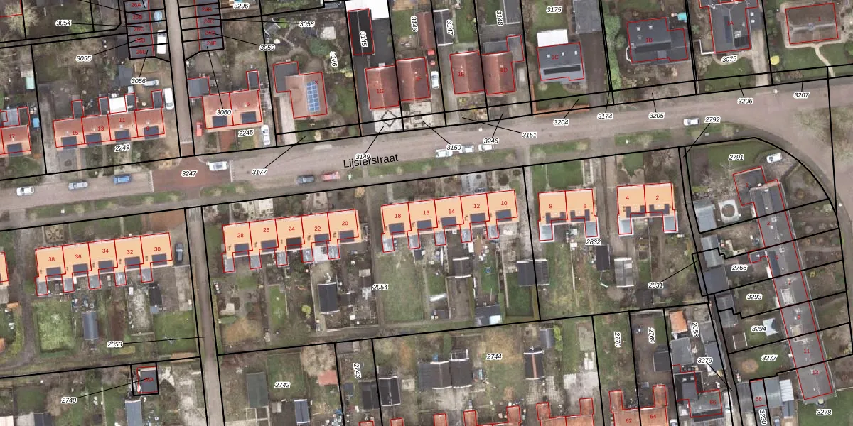 Het perceel waarop Lijsterstraat 16 staat heeft een oppervlakte van 2725 m². Dit is een zeer groot perceel. De perceeloppervlakte wordt geregistreerd door het Kadaster. Gedetailleerde informatie over de maten van dit perceel kunt u vinden in het rapport Kadastrale kaart met maatvoering van Lijsterstraat 16.
