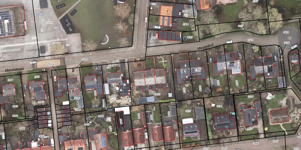 Het perceel waarop Merelstraat 14 staat heeft een oppervlakte van 823 m². Dit is een groot perceel. De perceeloppervlakte wordt geregistreerd door het Kadaster. Gedetailleerde informatie over de maten van dit perceel kunt u vinden in het rapport Kadastrale kaart met maatvoering van Merelstraat 14.