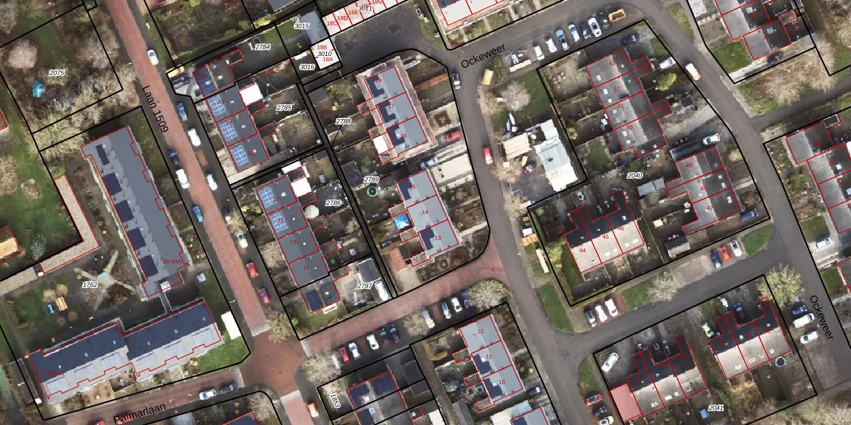 Het perceel waarop Ockeweer 14 staat heeft een oppervlakte van 1485 m². Dit is een zeer groot perceel. De perceeloppervlakte wordt geregistreerd door het Kadaster. Gedetailleerde informatie over de maten van dit perceel kunt u vinden in het rapport Kadastrale kaart met maatvoering van Ockeweer 14.