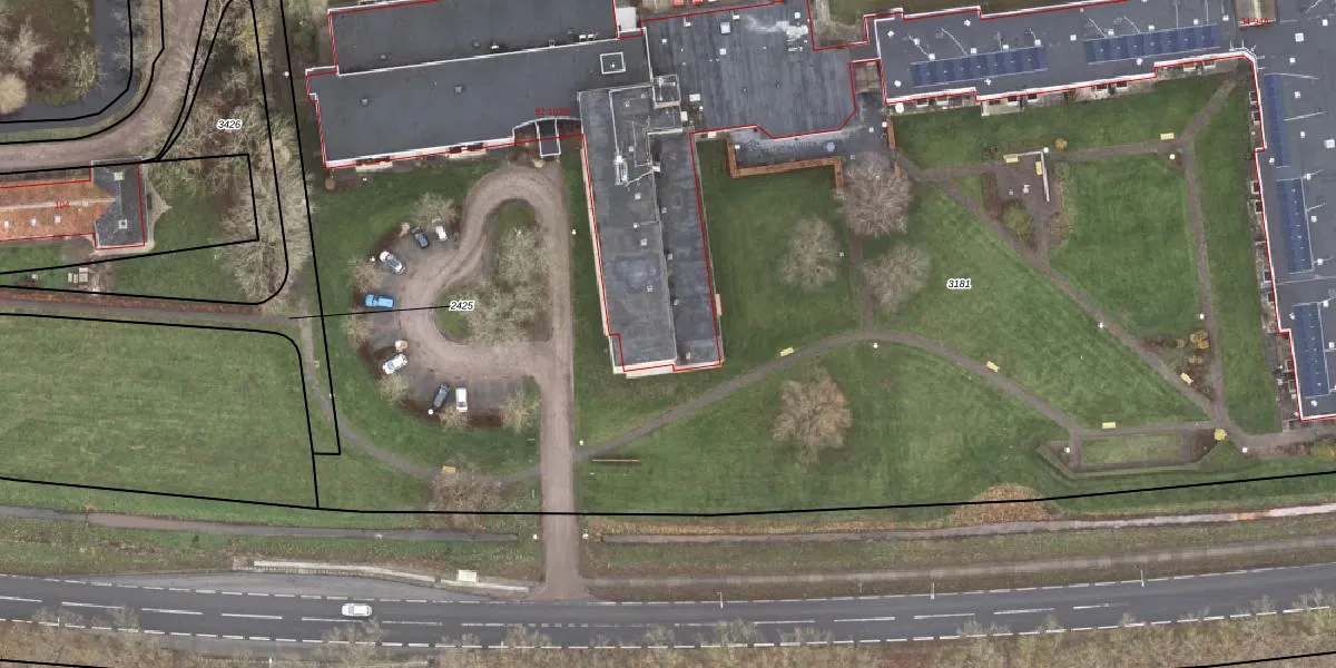 Het adres is gelegen op perceel 3181 in de sectie F en de kadastrale gemeente Scheemda. De kadastrale aanduiding is aldus SDA00-F-3181. De gemiddelde perceeloppervlakte in de kadastrale gemeente Scheemda is 8487,94 m². Dit perceel is met zijn 2,2 ha dus groter dan gemiddeld. De grootste perceeloppervlakte in de kadastrale gemeente is 43,3 ha. De kleinste oppervlakte bedraagt 0 m². Er zijn 161 adressen aanwezig op het perceel. In de Basisregistratie Kadaster (BRK) werden de grenzen van het perceel geregistreerd op 26-05-2008.