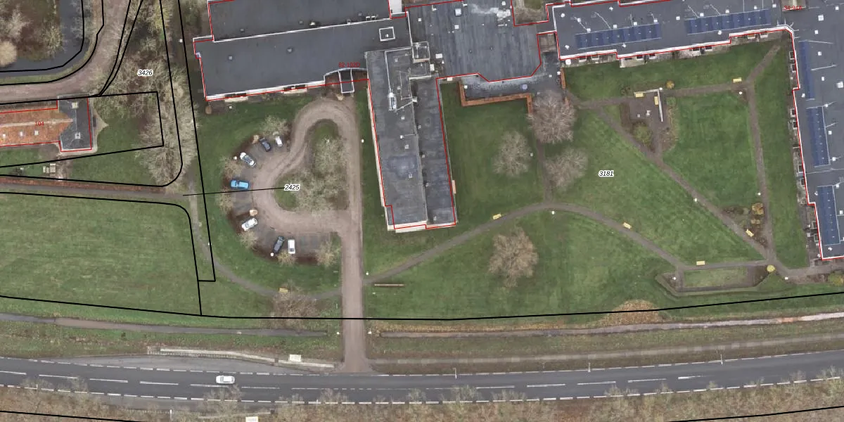 Het adres is gelegen op perceel 3181 in de sectie F en de kadastrale gemeente Scheemda. De kadastrale aanduiding is aldus SDA00-F-3181. De gemiddelde perceeloppervlakte in de kadastrale gemeente Scheemda is 8487,94 m². Dit perceel is met zijn 2,2 ha dus groter dan gemiddeld. De grootste perceeloppervlakte in de kadastrale gemeente is 43,3 ha. De kleinste oppervlakte bedraagt 0 m². Er zijn 161 adressen aanwezig op het perceel. In de Basisregistratie Kadaster (BRK) werden de grenzen van het perceel geregistreerd op 26-05-2008.