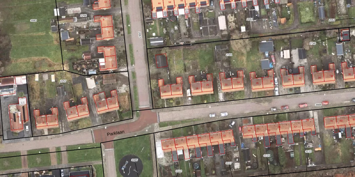 Parklaan 16 is gelegen op kadastraal perceel SDA00F2741. Deze kadastrale aanduiding is uniek en wordt gebruikt door het Kadaster om eigendomsrechten en andere zakelijke rechten vast te leggen. Het perceel maakt onderdeel uit van de kadastrale gemeente Scheemda.