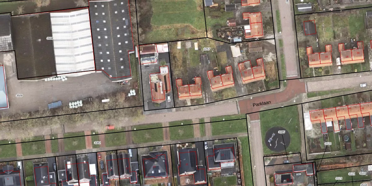 Parklaan 2 is gelegen op kadastraal perceel SDA00F2257. Deze kadastrale aanduiding is uniek en wordt gebruikt door het Kadaster om eigendomsrechten en andere zakelijke rechten vast te leggen. Het perceel maakt onderdeel uit van de kadastrale gemeente Scheemda.