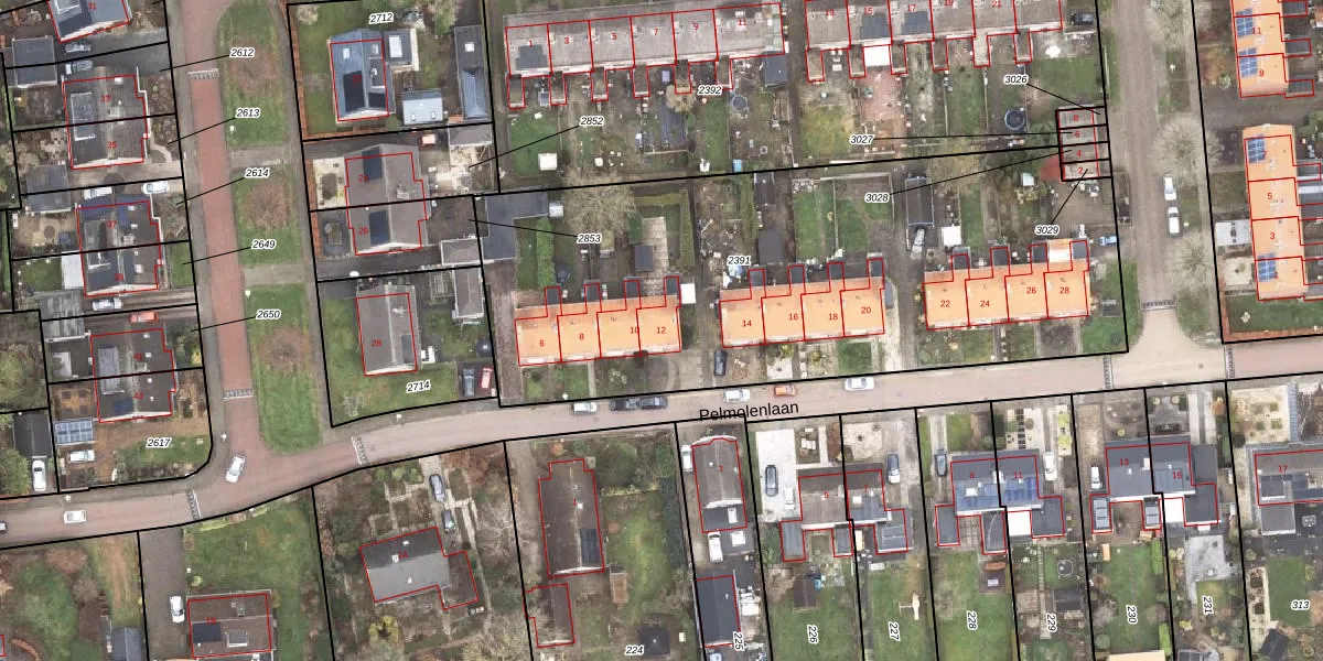 Het perceel waarop Pelmolenlaan 12 staat heeft een oppervlakte van 3015 m². Dit is een zeer groot perceel. De perceeloppervlakte wordt geregistreerd door het Kadaster. Gedetailleerde informatie over de maten van dit perceel kunt u vinden in het rapport Kadastrale kaart met maatvoering van Pelmolenlaan 12.