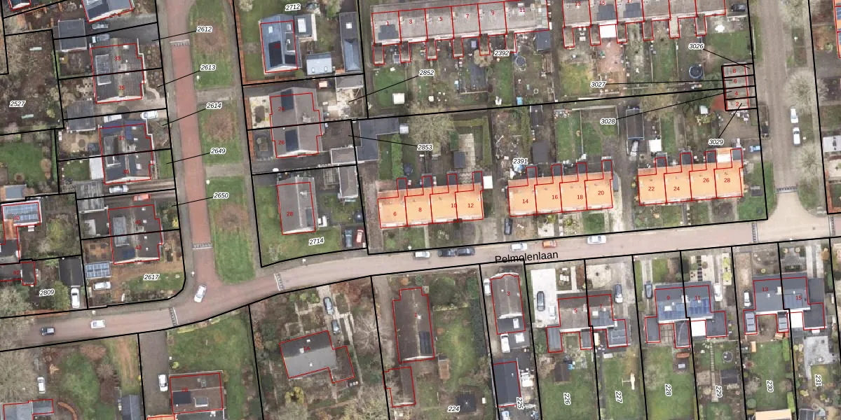 Het perceel waarop Pelmolenlaan 8 staat heeft een oppervlakte van 3015 m². Dit is een zeer groot perceel. De perceeloppervlakte wordt geregistreerd door het Kadaster. Gedetailleerde informatie over de maten van dit perceel kunt u vinden in het rapport Kadastrale kaart met maatvoering van Pelmolenlaan 8.
