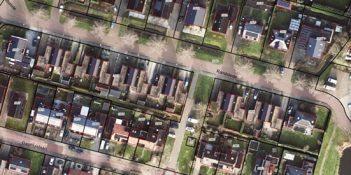 Het perceel waarop Randstede 12 staat heeft een oppervlakte van 2545 m². Dit is een zeer groot perceel. De perceeloppervlakte wordt geregistreerd door het Kadaster. Gedetailleerde informatie over de maten van dit perceel kunt u vinden in het rapport Kadastrale kaart met maatvoering van Randstede 12.