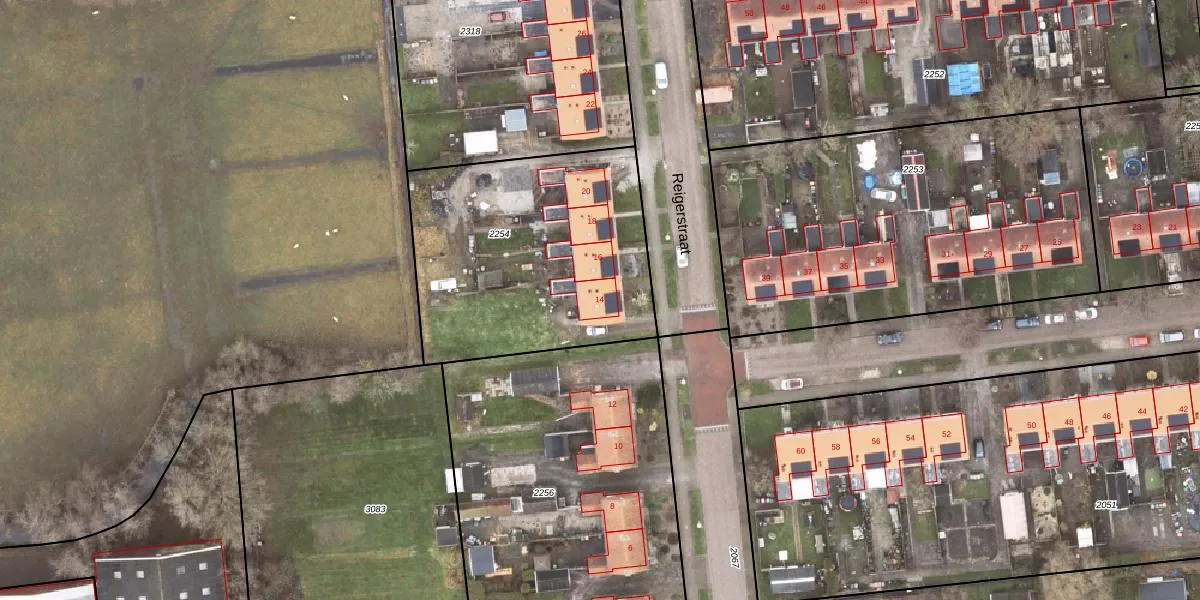 Reigerstraat 14 is gelegen op kadastraal perceel SDA00F2254. Deze kadastrale aanduiding is uniek en wordt gebruikt door het Kadaster om eigendomsrechten en andere zakelijke rechten vast te leggen. Het perceel maakt onderdeel uit van de kadastrale gemeente Scheemda.