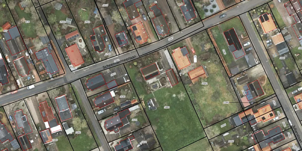 Het perceel waarop Scheemdermeerlaan 15 staat heeft een oppervlakte van 2038 m². Dit is een zeer groot perceel. De perceeloppervlakte wordt geregistreerd door het Kadaster. Gedetailleerde informatie over de maten van dit perceel kunt u vinden in het rapport Kadastrale kaart met maatvoering van Scheemdermeerlaan 15.