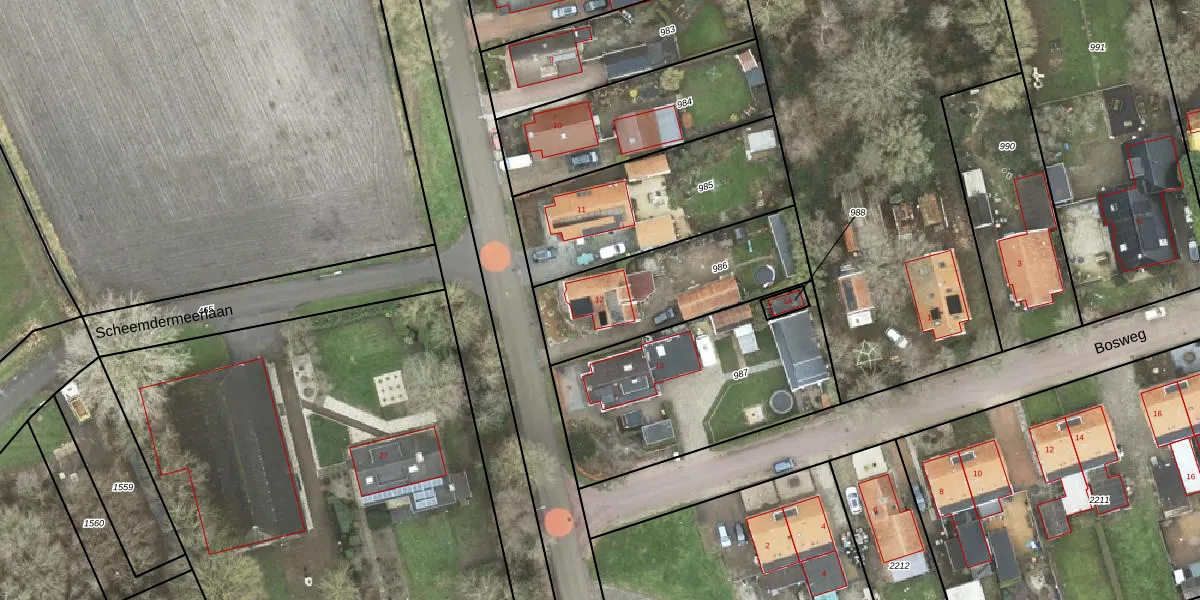 Het perceel waarop Scheemdermeersterweg 12 staat heeft een oppervlakte van 600 m². Dit is een groot perceel. De perceeloppervlakte wordt geregistreerd door het Kadaster. Gedetailleerde informatie over de maten van dit perceel kunt u vinden in het rapport Kadastrale kaart met maatvoering van Scheemdermeersterweg 12.