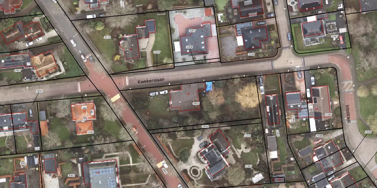 Het perceel waarop Stationsstraat 56 staat heeft een oppervlakte van 1550 m². Dit is een zeer groot perceel. De perceeloppervlakte wordt geregistreerd door het Kadaster. Gedetailleerde informatie over de maten van dit perceel kunt u vinden in het rapport Kadastrale kaart met maatvoering van Stationsstraat 56.