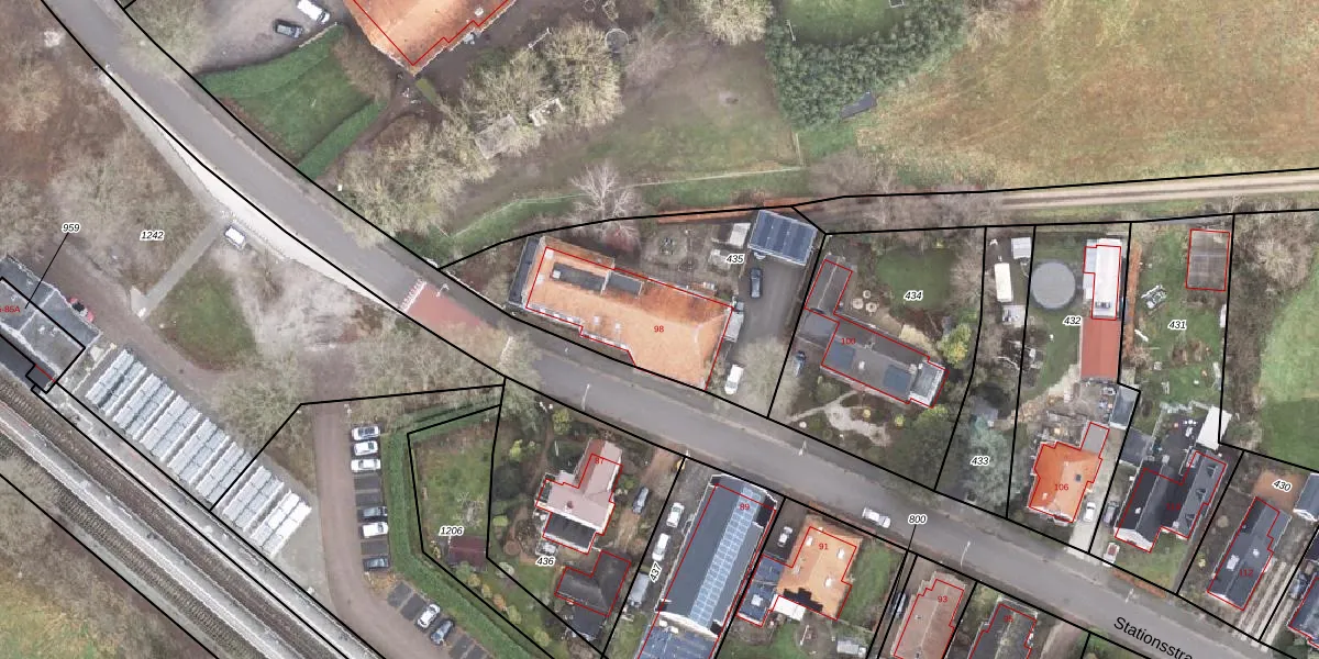 Stationsstraat 98 is gelegen op kadastraal perceel SDA00I435. Deze kadastrale aanduiding is uniek en wordt gebruikt door het Kadaster om eigendomsrechten en andere zakelijke rechten vast te leggen. Het perceel maakt onderdeel uit van de kadastrale gemeente Scheemda.