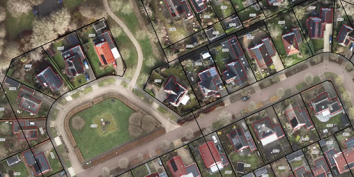 Het perceel waarop Waterlelie 38 staat heeft een oppervlakte van 587 m². Dit is een groot perceel. De perceeloppervlakte wordt geregistreerd door het Kadaster. Gedetailleerde informatie over de maten van dit perceel kunt u vinden in het rapport Kadastrale kaart met maatvoering van Waterlelie 38.