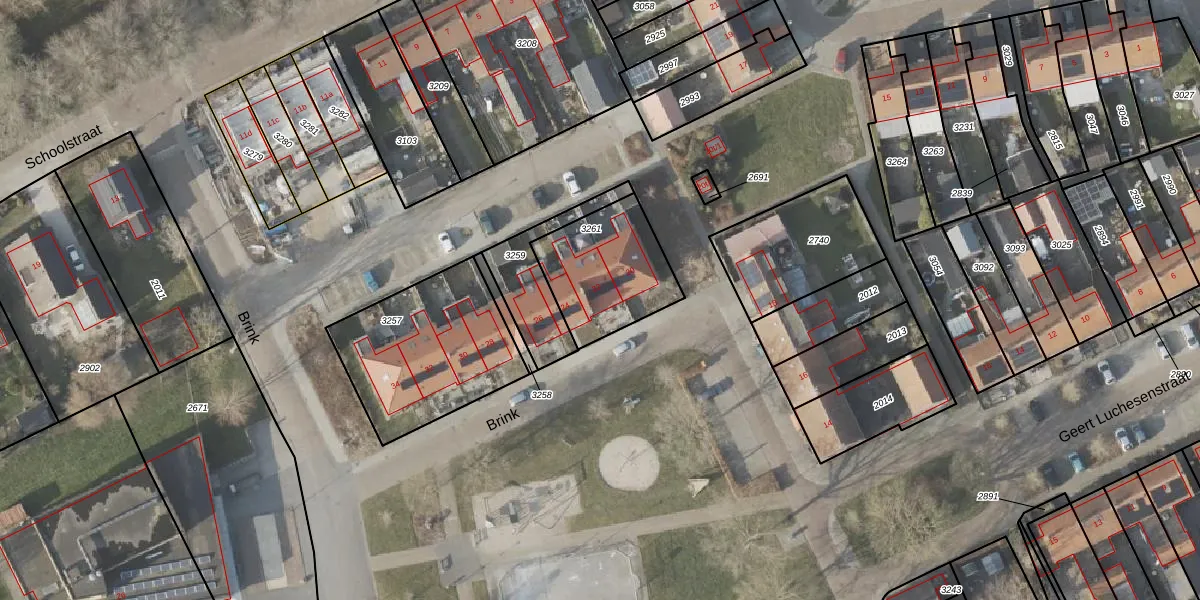 Het perceel waarop Brink 22 staat heeft een oppervlakte van 381 m². Dit is een groot perceel. De perceeloppervlakte wordt geregistreerd door het Kadaster. Gedetailleerde informatie over de maten van dit perceel kunt u vinden in het rapport Kadastrale kaart met maatvoering van Brink 22.