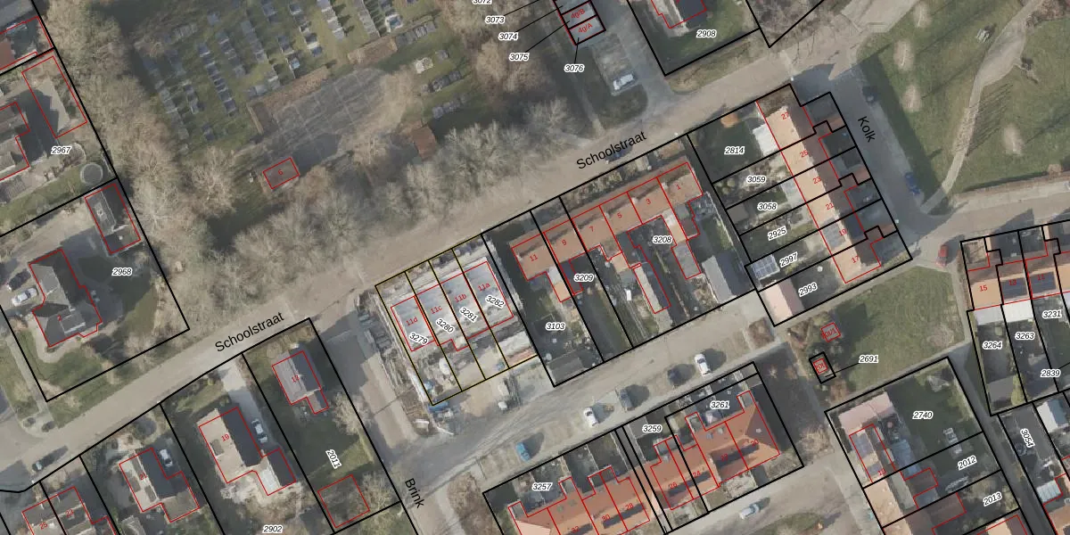 Het perceel waarop Schoolstraat 11 staat heeft een oppervlakte van 325 m². Dit is een groot perceel. De perceeloppervlakte wordt geregistreerd door het Kadaster. Gedetailleerde informatie over de maten van dit perceel kunt u vinden in het rapport Kadastrale kaart met maatvoering van Schoolstraat 11.