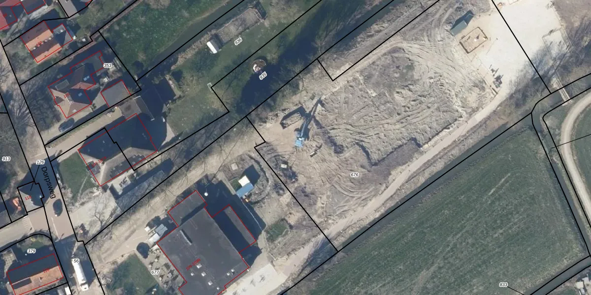 Het perceel waarop Dorpsweg 109 staat heeft een oppervlakte van 4750 m². Dit is een zeer groot perceel. De perceeloppervlakte wordt geregistreerd door het Kadaster. Gedetailleerde informatie over de maten van dit perceel kunt u vinden in het rapport Kadastrale kaart met maatvoering van Dorpsweg 109.
