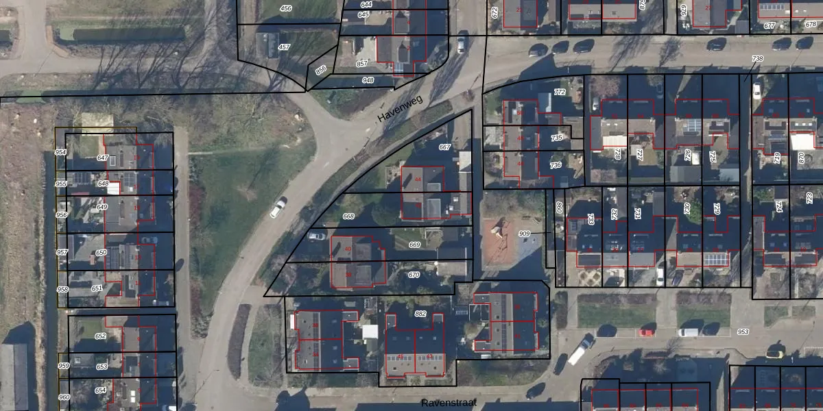Het perceel waarop Havenweg 42 staat heeft een oppervlakte van 300 m². Dit is een groot perceel. De perceeloppervlakte wordt geregistreerd door het Kadaster. Gedetailleerde informatie over de maten van dit perceel kunt u vinden in het rapport Kadastrale kaart met maatvoering van Havenweg 42.