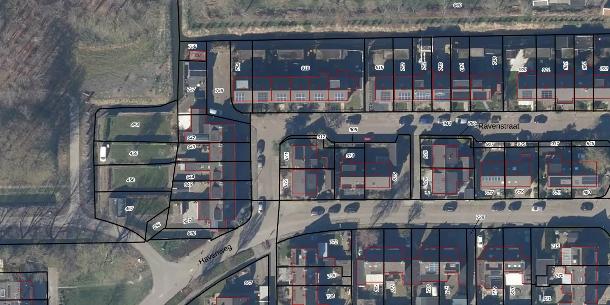 Het perceel waarop Ravenstraat 1 staat heeft een oppervlakte van 165 m². Dit is een middelgroot perceel. De perceeloppervlakte wordt geregistreerd door het Kadaster. Gedetailleerde informatie over de maten van dit perceel kunt u vinden in het rapport Kadastrale kaart met maatvoering van Ravenstraat 1.