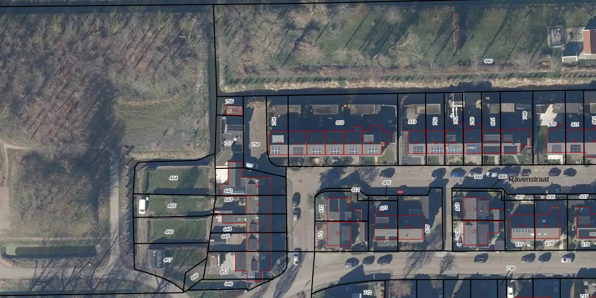 Het perceel waarop Ravenstraat 14 staat heeft een oppervlakte van 910 m². Dit is een groot perceel. De perceeloppervlakte wordt geregistreerd door het Kadaster. Gedetailleerde informatie over de maten van dit perceel kunt u vinden in het rapport Kadastrale kaart met maatvoering van Ravenstraat 14.