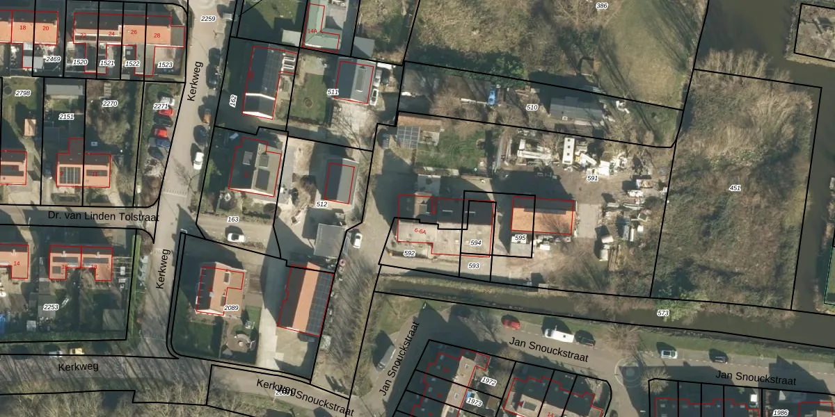 Kerkweg 6-A is gelegen op kadastraal perceel SLN00A591. Deze kadastrale aanduiding is uniek en wordt gebruikt door het Kadaster om eigendomsrechten en andere zakelijke rechten vast te leggen. Het perceel maakt onderdeel uit van de kadastrale gemeente Schelluinen.