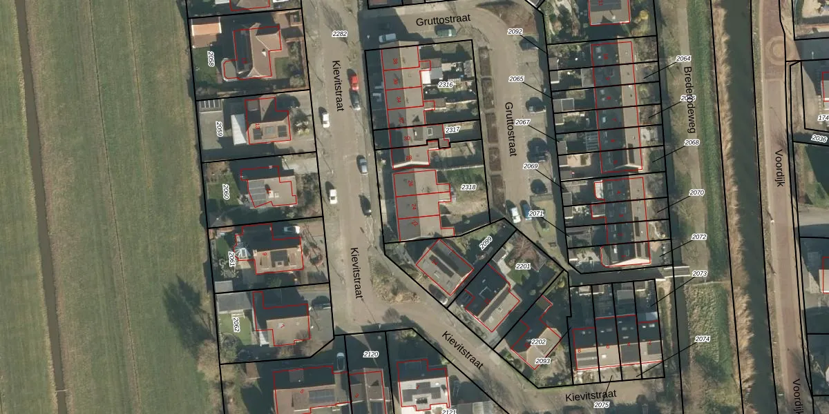 Kievitstraat 24 is gelegen op kadastraal perceel SLN00B2318. Deze kadastrale aanduiding is uniek en wordt gebruikt door het Kadaster om eigendomsrechten en andere zakelijke rechten vast te leggen. Het perceel maakt onderdeel uit van de kadastrale gemeente Schelluinen.