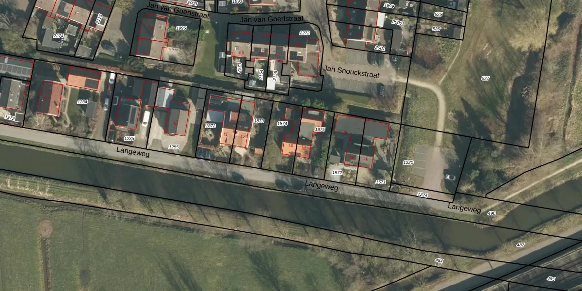 Langeweg 13 is gelegen op kadastraal perceel SLN00B1874. Deze kadastrale aanduiding is uniek en wordt gebruikt door het Kadaster om eigendomsrechten en andere zakelijke rechten vast te leggen. Het perceel maakt onderdeel uit van de kadastrale gemeente Schelluinen.