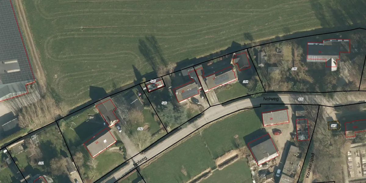 Nolweg 25 is gelegen op kadastraal perceel SLN00A546. Deze kadastrale aanduiding is uniek en wordt gebruikt door het Kadaster om eigendomsrechten en andere zakelijke rechten vast te leggen. Het perceel maakt onderdeel uit van de kadastrale gemeente Schelluinen.