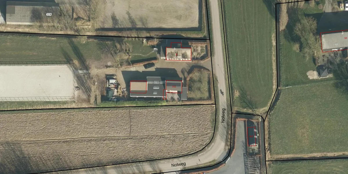 Het perceel waarop Nolweg 31-Z staat heeft een oppervlakte van 2,3 ha. Dit is een zeer groot perceel. De perceeloppervlakte wordt geregistreerd door het Kadaster. Gedetailleerde informatie over de maten van dit perceel kunt u vinden in het rapport Kadastrale kaart met maatvoering van Nolweg 31-Z.
