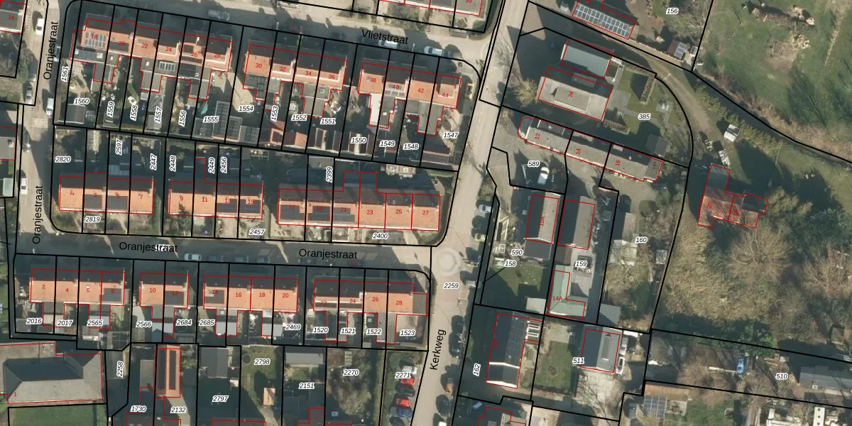 Het perceel waarop Oranjestraat 27 staat heeft een oppervlakte van 520 m². Dit is een groot perceel. De perceeloppervlakte wordt geregistreerd door het Kadaster. Gedetailleerde informatie over de maten van dit perceel kunt u vinden in het rapport Kadastrale kaart met maatvoering van Oranjestraat 27.