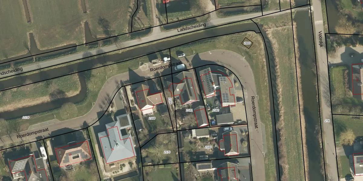 Roerdompstraat 19 is gelegen op kadastraal perceel SLN00B2181. Deze kadastrale aanduiding is uniek en wordt gebruikt door het Kadaster om eigendomsrechten en andere zakelijke rechten vast te leggen. Het perceel maakt onderdeel uit van de kadastrale gemeente Schelluinen.