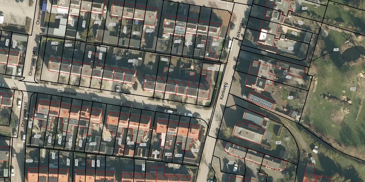 Het perceel waarop Vlietstraat 35 staat heeft een oppervlakte van 1343 m². Dit is een zeer groot perceel. De perceeloppervlakte wordt geregistreerd door het Kadaster. Gedetailleerde informatie over de maten van dit perceel kunt u vinden in het rapport Kadastrale kaart met maatvoering van Vlietstraat 35.