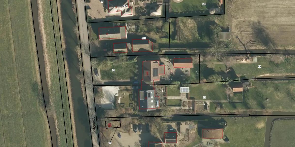 Het perceel waarop Voordijk 39-A staat heeft een oppervlakte van 1440 m². Dit is een zeer groot perceel. De perceeloppervlakte wordt geregistreerd door het Kadaster. Gedetailleerde informatie over de maten van dit perceel kunt u vinden in het rapport Kadastrale kaart met maatvoering van Voordijk 39-A.