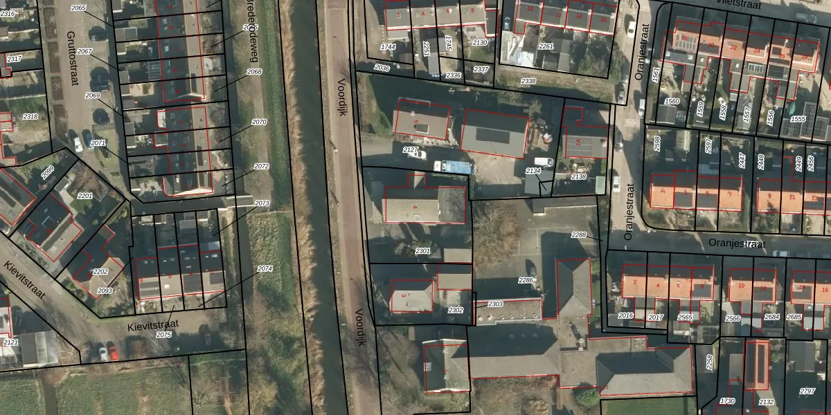 Het perceel waarop Voordijk 4 staat heeft een oppervlakte van 581 m². Dit is een groot perceel. De perceeloppervlakte wordt geregistreerd door het Kadaster. Gedetailleerde informatie over de maten van dit perceel kunt u vinden in het rapport Kadastrale kaart met maatvoering van Voordijk 4.