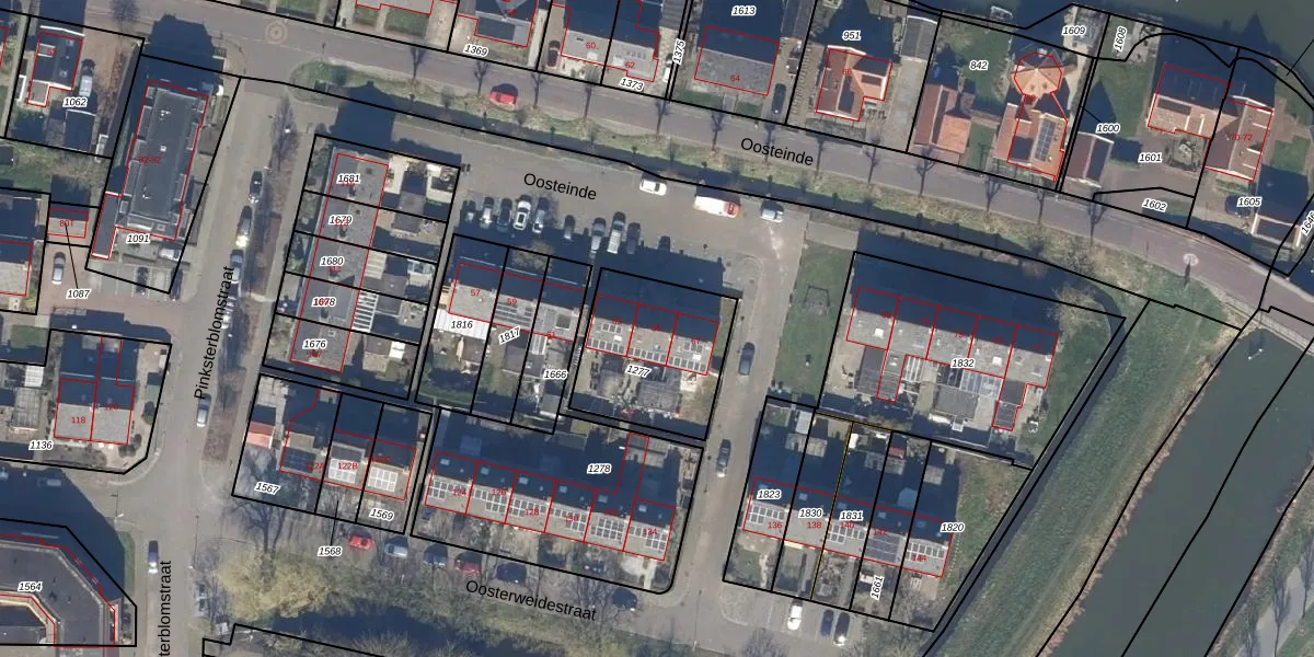 Het perceel waarop Oosteinde 65 staat heeft een oppervlakte van 466 m². Dit is een groot perceel. De perceeloppervlakte wordt geregistreerd door het Kadaster. Gedetailleerde informatie over de maten van dit perceel kunt u vinden in het rapport Kadastrale kaart met maatvoering van Oosteinde 65.