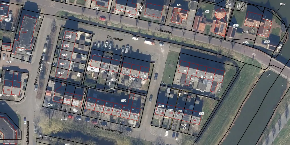 Het perceel waarop Oosteinde 67 staat heeft een oppervlakte van 466 m². Dit is een groot perceel. De perceeloppervlakte wordt geregistreerd door het Kadaster. Gedetailleerde informatie over de maten van dit perceel kunt u vinden in het rapport Kadastrale kaart met maatvoering van Oosteinde 67.